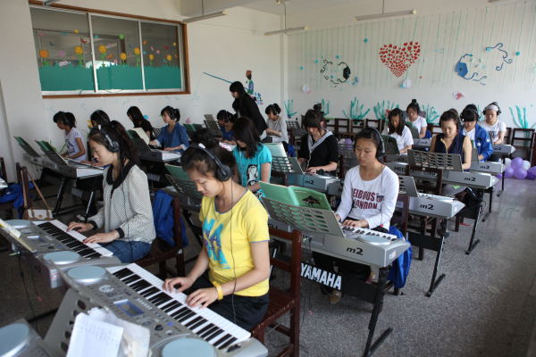 琴房(综合馆304)在原有的设备设施基础上,增加了一台电视,以满足学生实训要求。