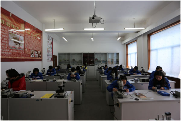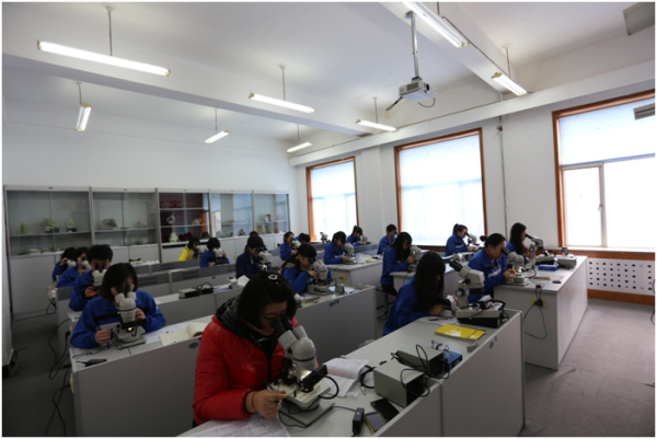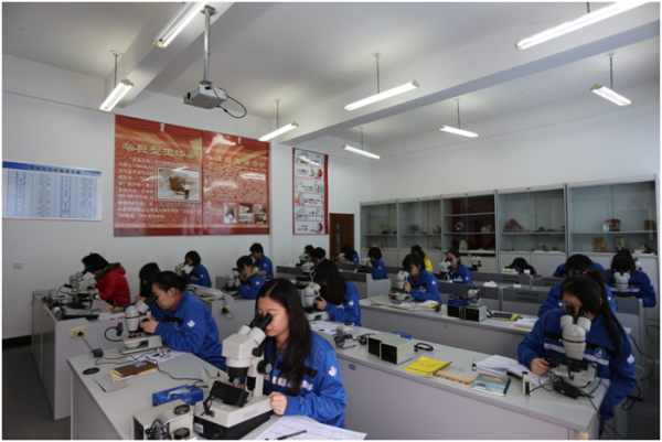 在原有的珠宝鉴定实训室(1号教学楼401室)基础上,再增加一个珠宝鉴定实训室(1号教学楼409),以满足学生实训要求。另在1号教学楼增设矿物鉴定实训室及矿物标本展示室。另外在创业中心建立珠宝营销(销售)操作实训中心。