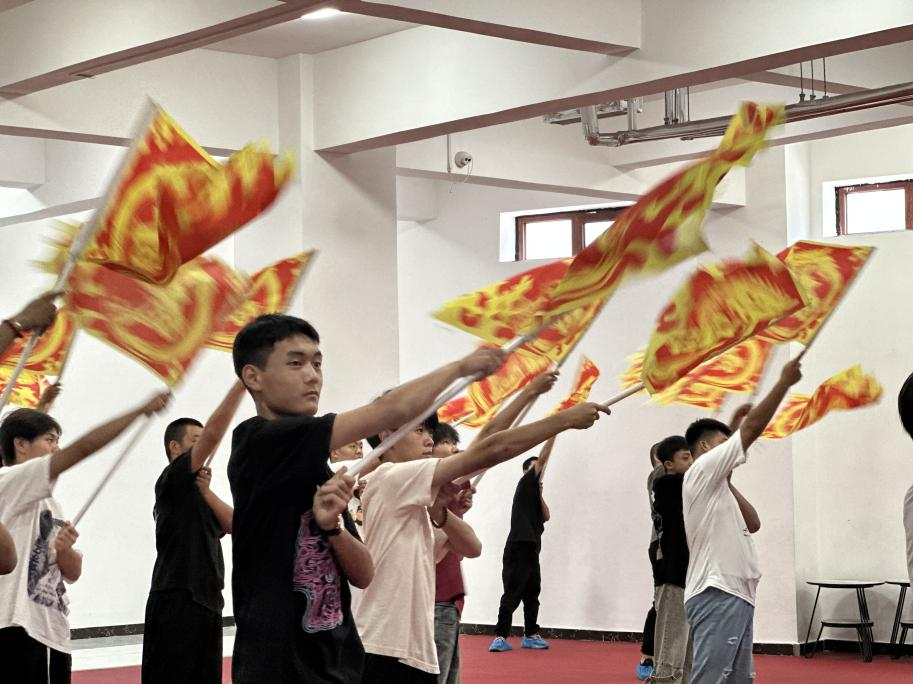 学生在练习旗舞动作