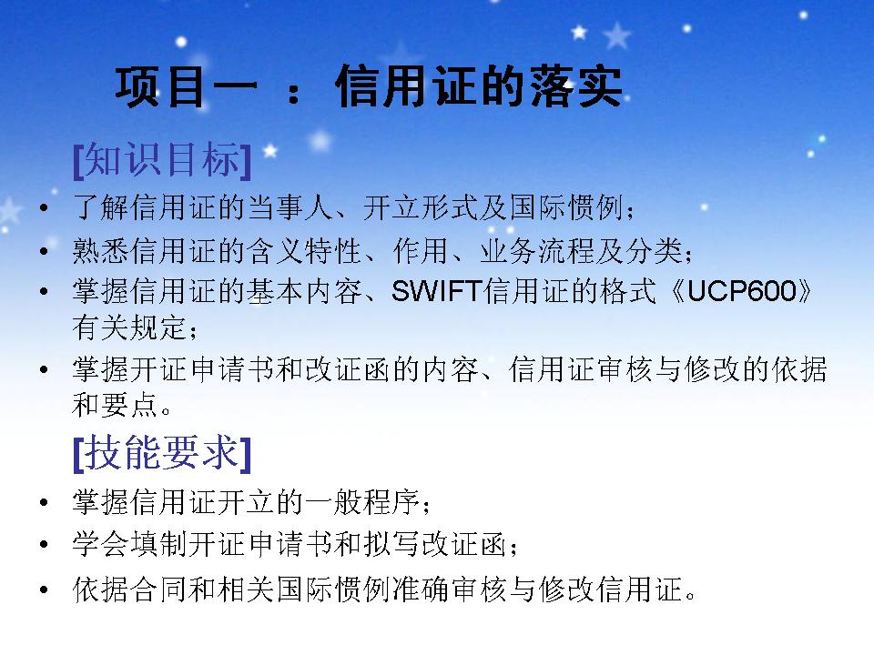 项目一 信用证落实