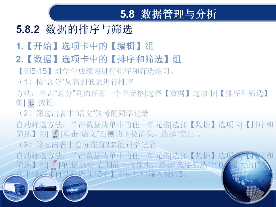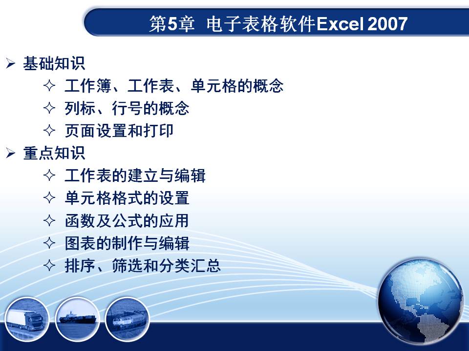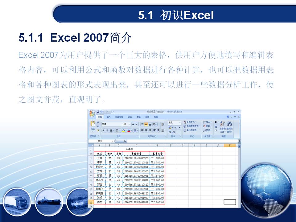 第5章 电子表格软件Excel2007