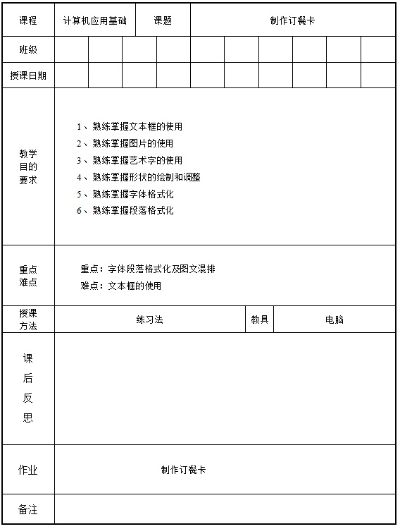 特色教案-制作订餐卡