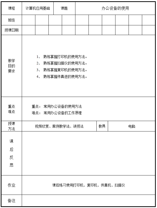 特色教案-办公设备的使用
