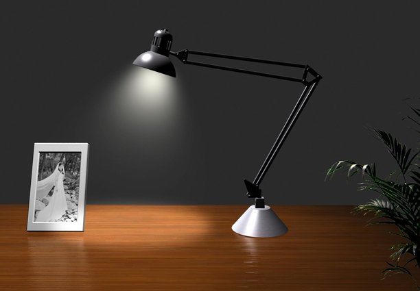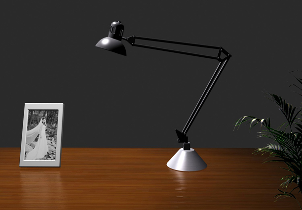 1、“文件”——“打开” “台灯”文件(这是一幅从3ds Max中渲染出来的未设置台灯光影效果的位图图片。接下来讲运用photoshop中的相应工具和命令为台灯制作光晕效果。