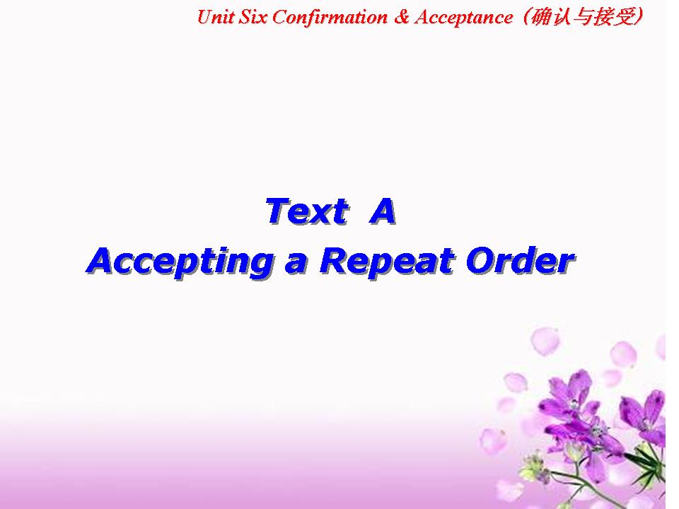 Unit 6 Confirmation & Acceptance