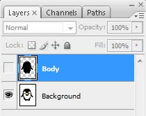 2、创建一个新层命名为 ‘Body’选择钢笔工具 (钢笔工具的快捷键‘P’).