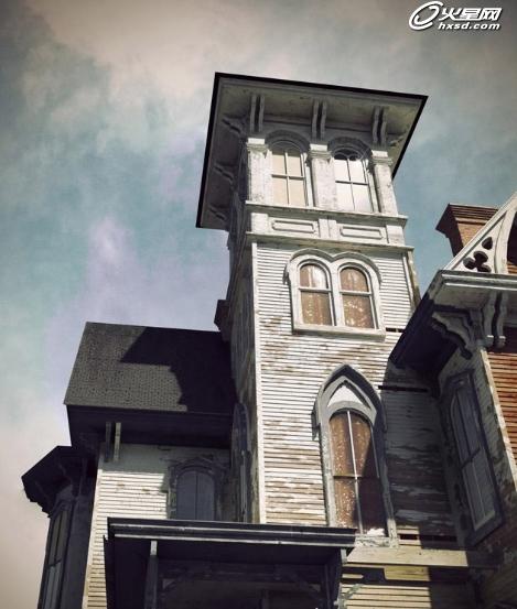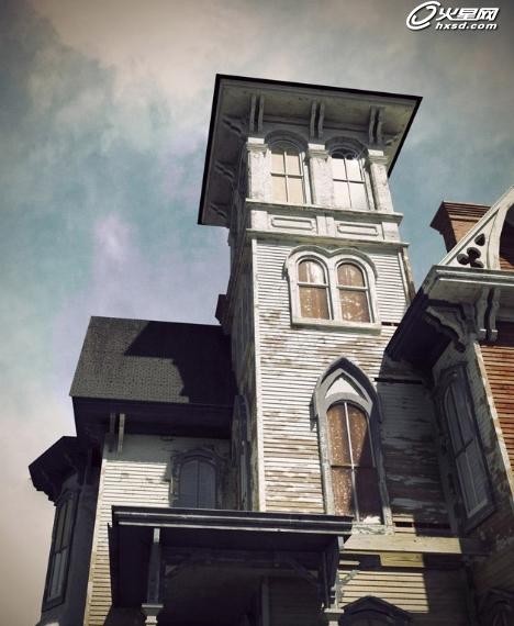 最终的合成效果。我想要达到的目的和前文提到的一样,就是体现出这座古老的建筑随时光流逝而变的破旧的气质。