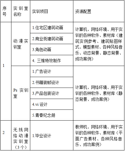 平面设计实训室内设有两台300兆/秒的无限路由器,实训室教师机装有Auto CAD2007版、photoshop cs4版、3ds max2010版等高版本专业技能软件;有大量平面及相关行业的素材、资料等。